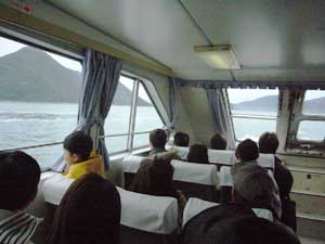 船の中~。駅から船に乗って会場に。でも歩いても5分くらいしか変わらない。笑