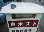 日生の公民館においてある白ポスト。の上の石ころアート。